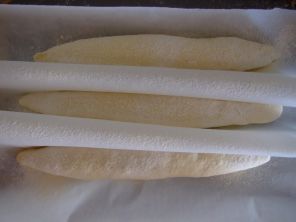 Fermantasyonunu tamamlamış ve en az iki katına ulaşmış hamur, kabarma kabından çalışma tezgahına veya silikon mat üzerine alınır. Tartılarak uygun 3 parçaya kesilerek ayrılır. Taş ekmeği tekniğinde gösterilen yöntemle ince ve uzun (25-30 cm) bir somun şekli verilir. Şekil verilmiş hamur, son kabarmasını yapacağı, kürek üzerine serilmiş yağlı kağıt üzerine ek yerleri aşağıya gelecek şekilde konulur. Son kabarma için de 2 kat olması beklenir. Bu süre de ortam sıcaklığına göre 1.5-2 saat arasında sürmektedir.
